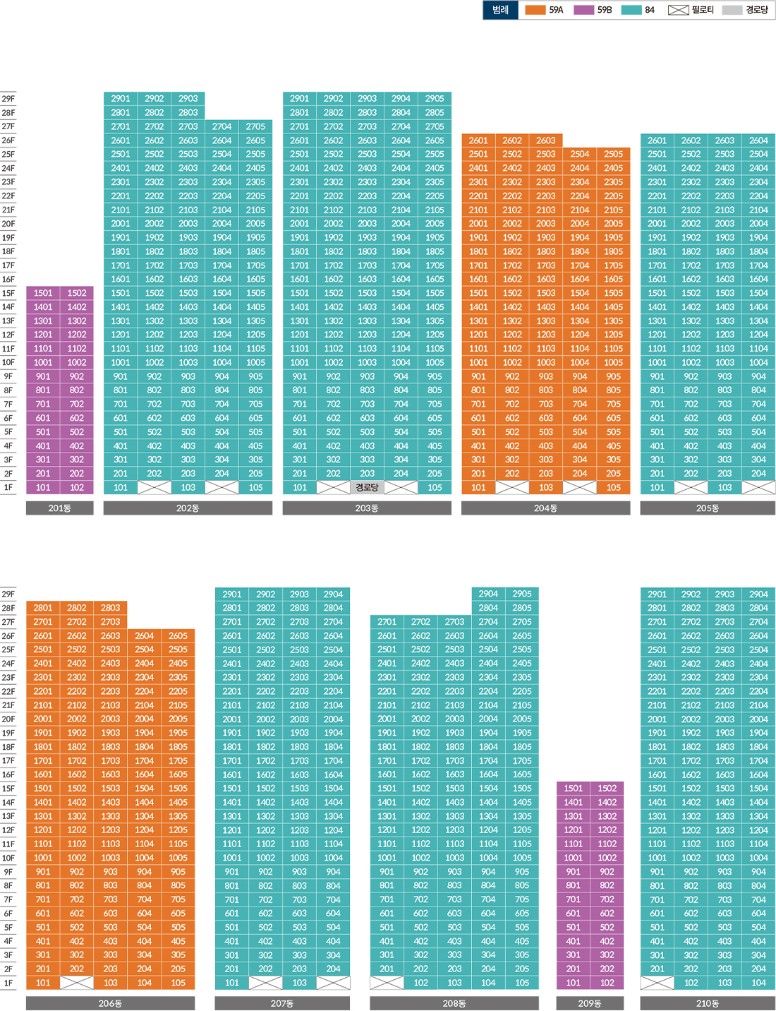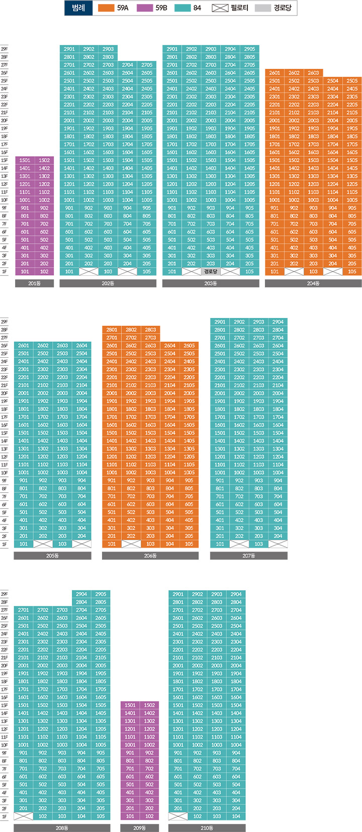 상기 동·호수 배치도는 제작과정상 오탈자가 있을 수 있으므로, 계약시 해당 동·호수를 견본주택에서 반드시 확인하시기 바랍니다.