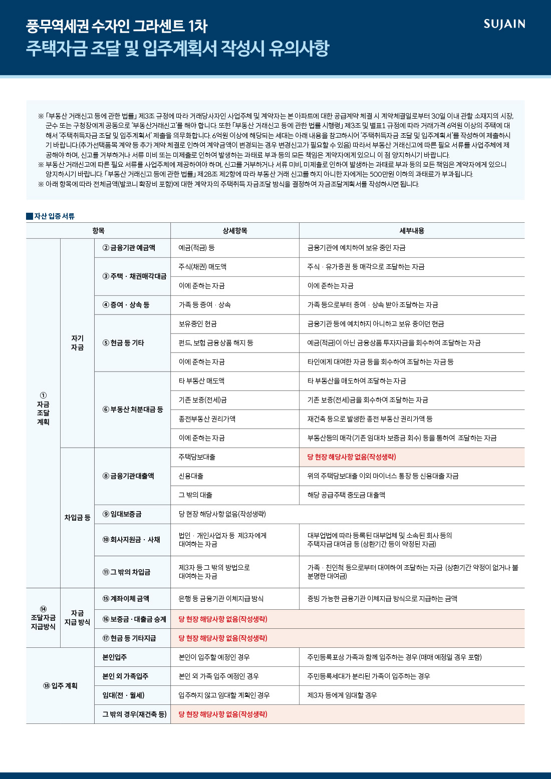 주택자금 조달 및 입주계획서(샘플)