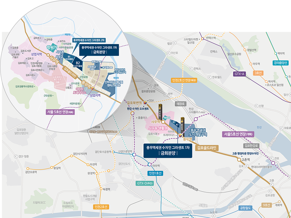 김포시청 등 관공서, 대형상권, 문화시설 등